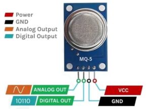 The MQ-5 sensor contains a heating element and a gas-sensitive resistor. When the sensor is exposed to combustible gases such as LPG or methane, the resistance of the sensing material changes. This change is then converted to an analog voltage output or compared to a set threshold to provide a digital signal.