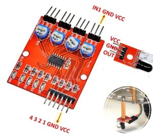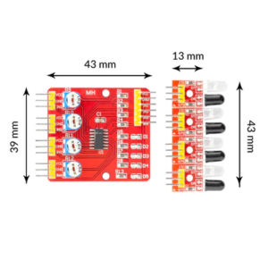 Ideal for hobbyists, students, and robotics enthusiasts, the 4-channel IR tracking module integrates easily with Arduino, Raspberry Pi, and other microcontroller platforms, offering a plug-and-play solution for robotics and automation projects.